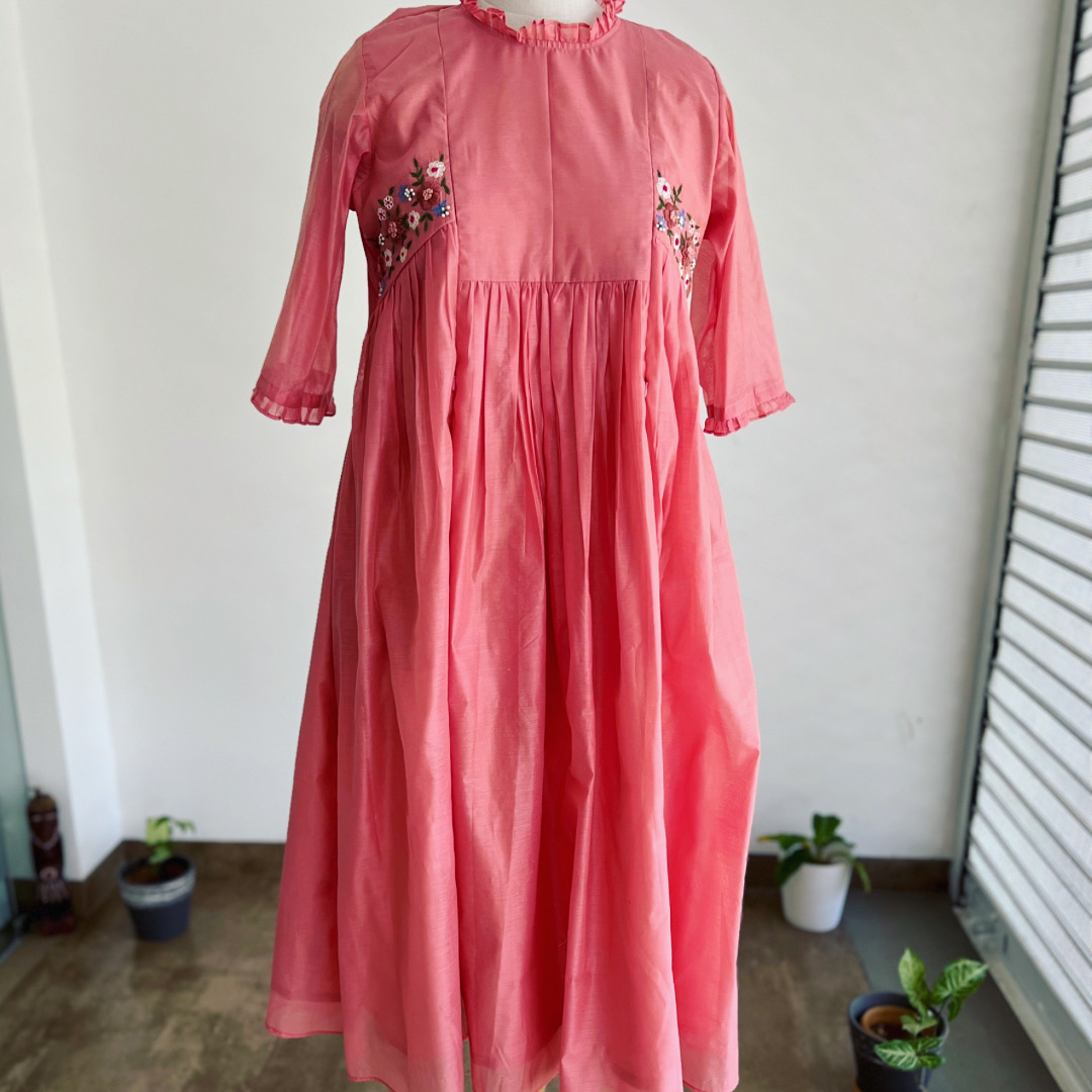Be the first to review “Pink Chanderi feeding zip option attire”