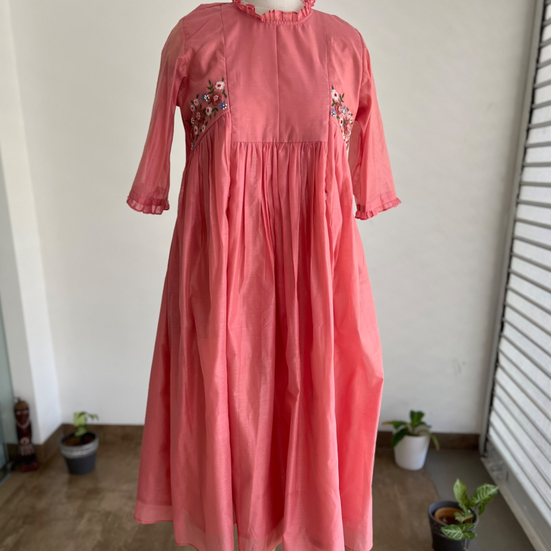 Pink Chanderi feeding zip option attire